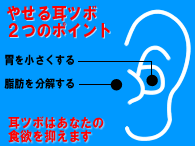 。胃を小さくするツボと脂肪を分解するツボを刺激することで、